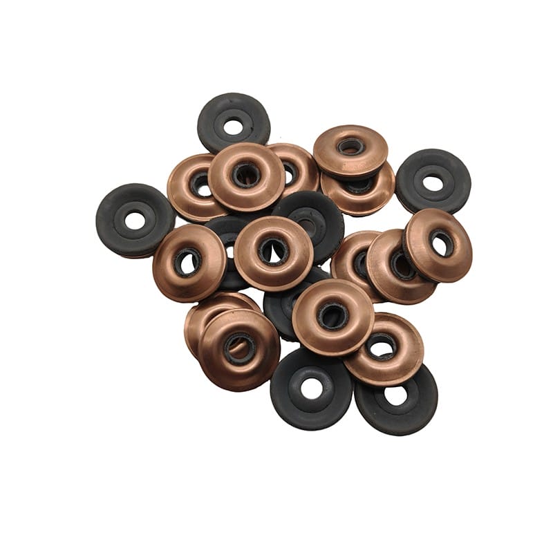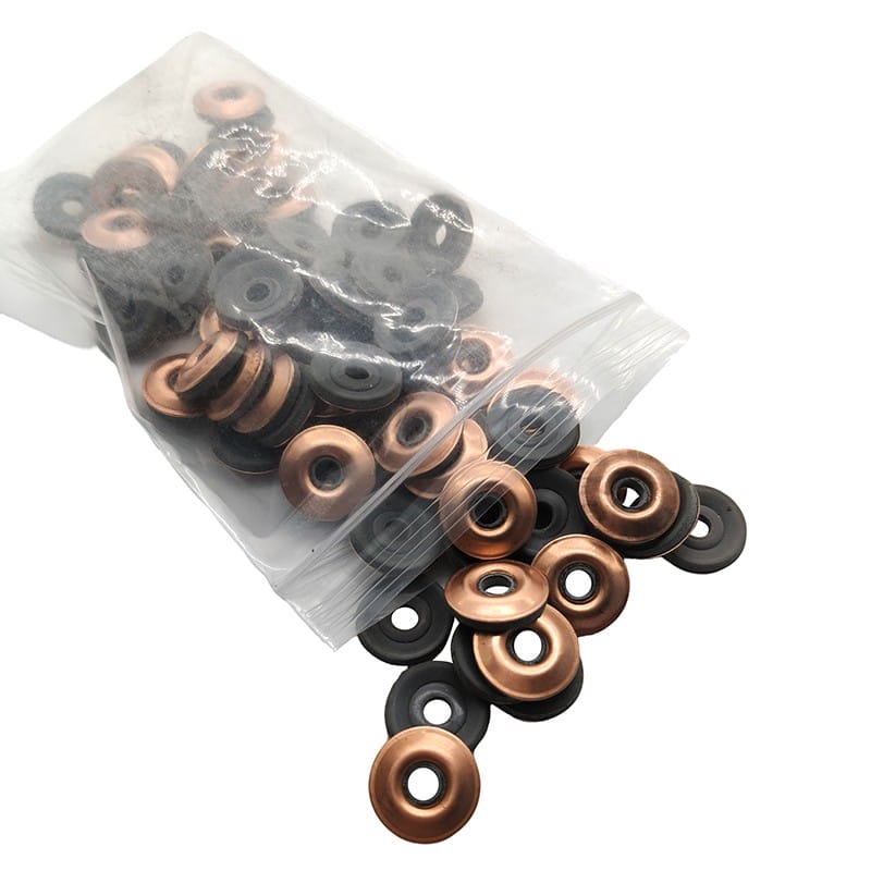 Nos rondelles adhésives thermofusibles en cuivre sont fabriquées en cuivre et en caoutchouc, avec un diamètre intérieur de 4 mm et un diamètre extérieur disponible en 15 mm ou 19 mm. Ils servent de composant d’étanchéité couramment utilisé. Nous polissons la surface pour éliminer les couches d’oxydation avant d’appliquer le revêtement adhésif thermofusible. Nos produits offrent une étanchéité étanche, résistent aux températures élevées et à la corrosion et fonctionnent de manière fiable dans des environnements extrêmes. De plus, les rondelles adhésives thermofusibles en cuivre offrent une excellente conductivité électrique et thermique et sont faciles à installer. Les rondelles adhésives thermofusibles en cuivre sont largement utilisées dans la fabrication automobile, la production d'électricité et les équipements électroniques. Ils sont généralement utilisés pour sceller, connecter et fournir une protection contre la poussière et l’humidité.